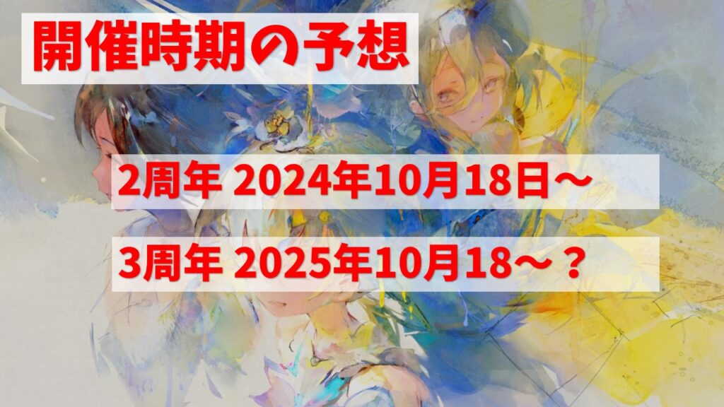 メメントモリ3周年イベントは、リリース日の10月18日からになると思います。2周年も10月18日からでした。